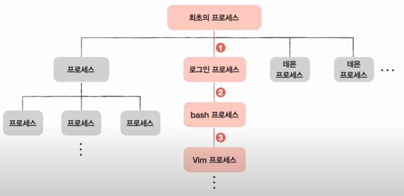 - 최초의 프로세스 PID는 항상 1번이며 모든 프로세스 최상단에 있는 부모 프로세스이다.