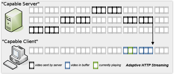 예를 들면, 사용자의 네트워크 사정이 좋지 않다면 동영상의 480P 소스를 한 조각씩 스트리밍 하다가, 네트워크 상황이 나아지면 다음 조각은 더 높은 해상도를 갖는 소스를 다운로드해 스트리밍할 수 있다.